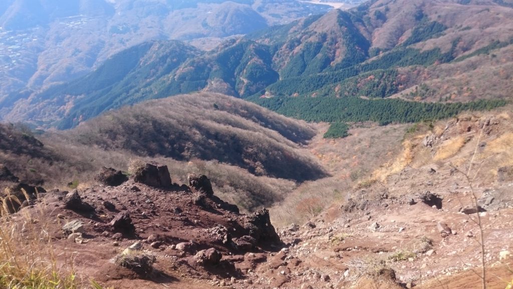 景色も色々見れる場所なんだけど、それよりも丹沢とは土が違うことが気になる僕。そして向こうに火山の煙が見える。そうあの時に噴火していた箱根の煙ですよ。煙の写真は後ほど。