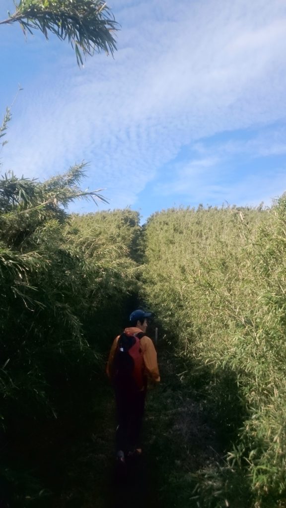 ↑明神ヶ岳山頂の写真も載せずに、このなんだかへんてこりんな道の写真を載せる。これはすでに明神ヶ岳を越え、金時山に向かって縦走している時の写真であります。とにかく笹が多い。どんぐらい多いかって、